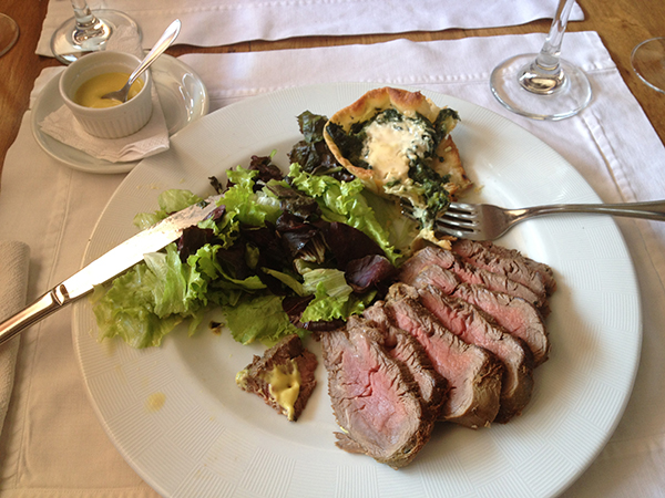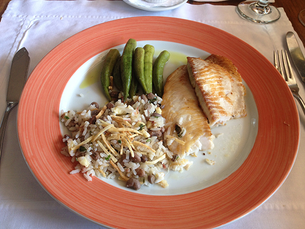 A comida… Hum… É boa, mas, também, nada demais. A especialidade deles é comida brasileira com uma pitada de sofisticação. Mas já comi em kilos que dão um caldo em matéria de sabor no Aprazível. O Nando pediu tilápia com baião-de-dois e quiabo e achou o quiabo muito gorduroso (muita manteiga) e o baião-de-dois só tinha no nome mesmo. Eu comi rosbife de mignon com mostarda e torta de batata com espinafre e achei tudo muito sem sal, nada apetitoso.