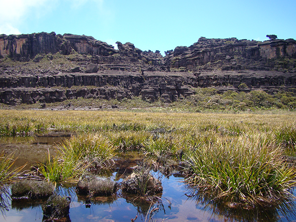 No Campo Base pudemos ver a grandiosidade do Monte Roraima. Estávamos bem próximo da parede e parecia impossível subir tudo aquilo. Não conseguíamos ver a trilha até o topo, mas apenas o muro!
