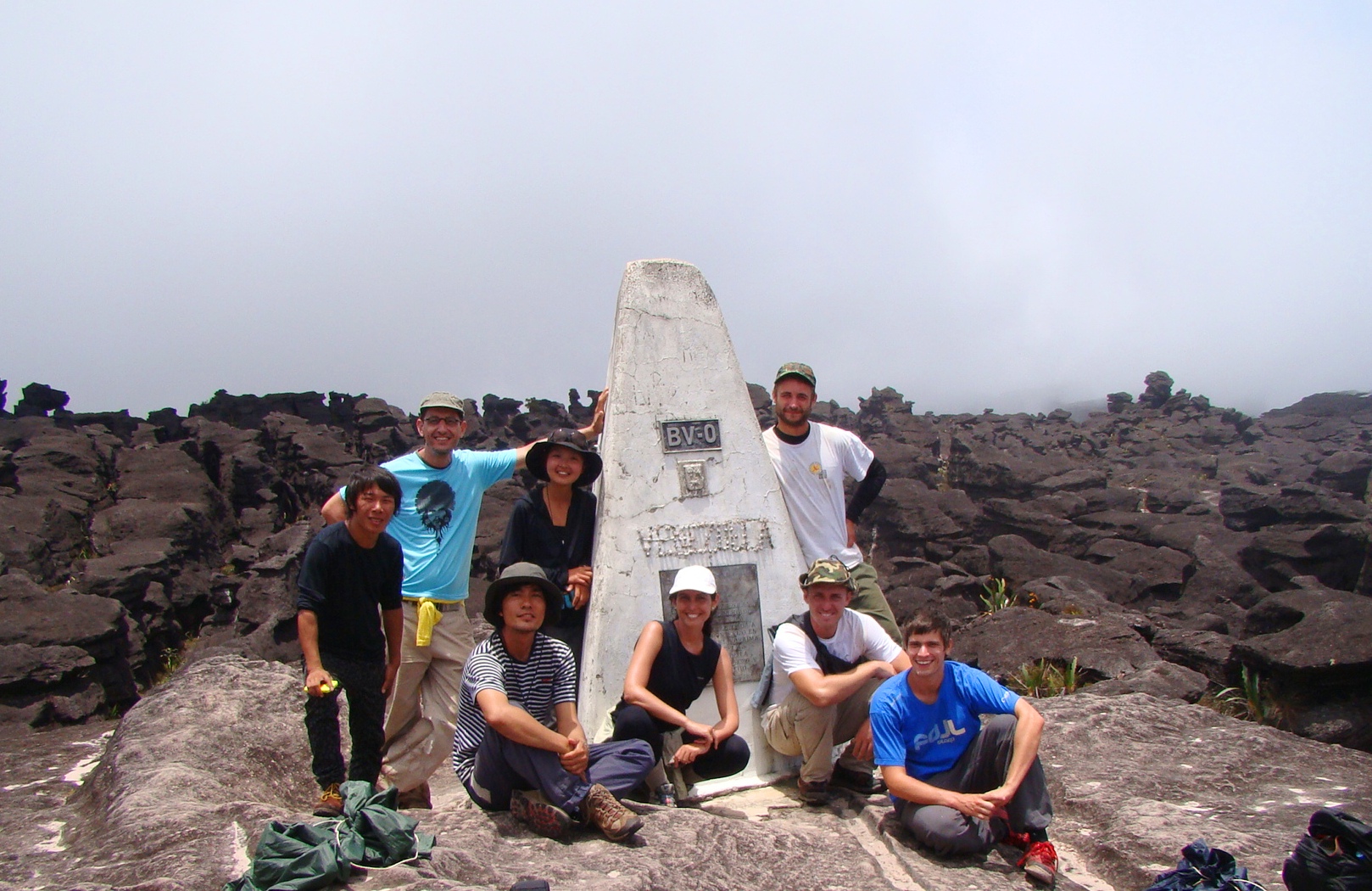 Esperando o translado no albergue, descobrimos que mais 4 pessoas iam se juntar ao nosso grupo (dois japoneses, um francês e um belga). E fomos apresentados para o nosso guia, que nos acompanharia nos 7 dias de caminhada, o Fernando. O Fernando era um venezuelano, com traços indígenas, baixinho, todo metidinho a moderno, usava gel no cabelo para ficar para cima (estilo porco espinho) e usava roupa e acessórios fakes de marcas famosas (ex.: ele usava um óculos escuros da Dolce & Gabbana). Ele realmente tinha um estereótipo de fazer rir. Além disso, logo, logo, íamos descobrir que de guia ele só tinha o título, porque ele jamais andou na nossa frente (salvo em algumas raras circunstâncias quando estávamos no topo) e em nenhum momento se preocupou em nos mostrar ou ensinar nada. Nem o sapinho preto, típico do topo do Mt Roraima, ele se preocupou em pegar e nos mostrar. Quem fez isso foi o belga do nosso grupo que fizemos amizade ao longo da caminhada.