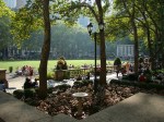 Atrás da biblioteca, você vai encontrar um dos parques mais bonitos de NYC, na minha opinião: o Bryant Park. O Bryant Park me passa uma energia muito tranquila com a combinação das suas muretas clássicas, com o gramado e as sombras das árvores. É muito comum você encontrar senhores praticando Tai Chi. É difícil imaginar que em 1960 (não faz tanto tempo assim) o parque era tomado por traficantes de drogas e que só em 1989, com uma reforma, ele passou a ser frequentado por turistas e funcionários dos prédios em volta. Falando nisso, se vocês forem nas épocas quentes de NYC, você vai perceber que os nova iorquinos geralmente almoçam nos parques da cidade com uma caixinha de salada. Isso é muito legal, pois deixa a cidade sempre muito viva!