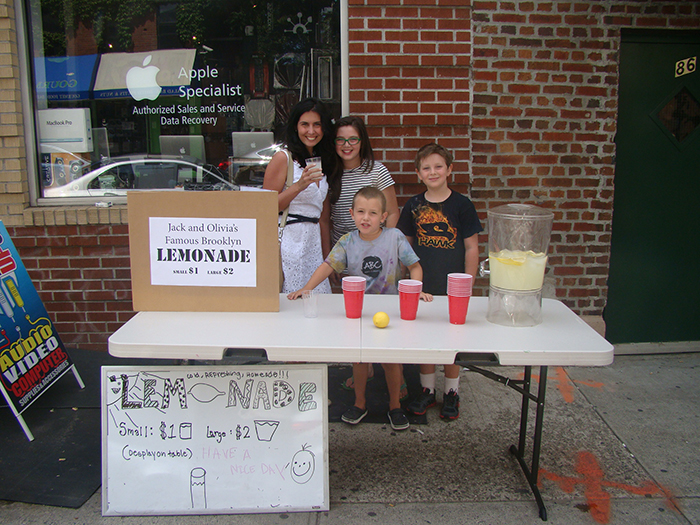 Williamsburg, BrooklynPara fazer a digestão, fomos bater as pernas pelo bairro! Não sei nem como expressar a fofura que é este bairro. Ficamos fazendo zigue-zague entre as ruas Kent Ave e Bedford Ave, começando na N 6th St. Logo no primeiro quarteirão nos deparamos com uma tendinha de crianças americanas vendendo suco de limão na rua!!!! Pronto! Alí eu me senti dentro de um filme “american away of life”. Foi irresistível! Comprei o suco de limão e tirei uma foto com eles!